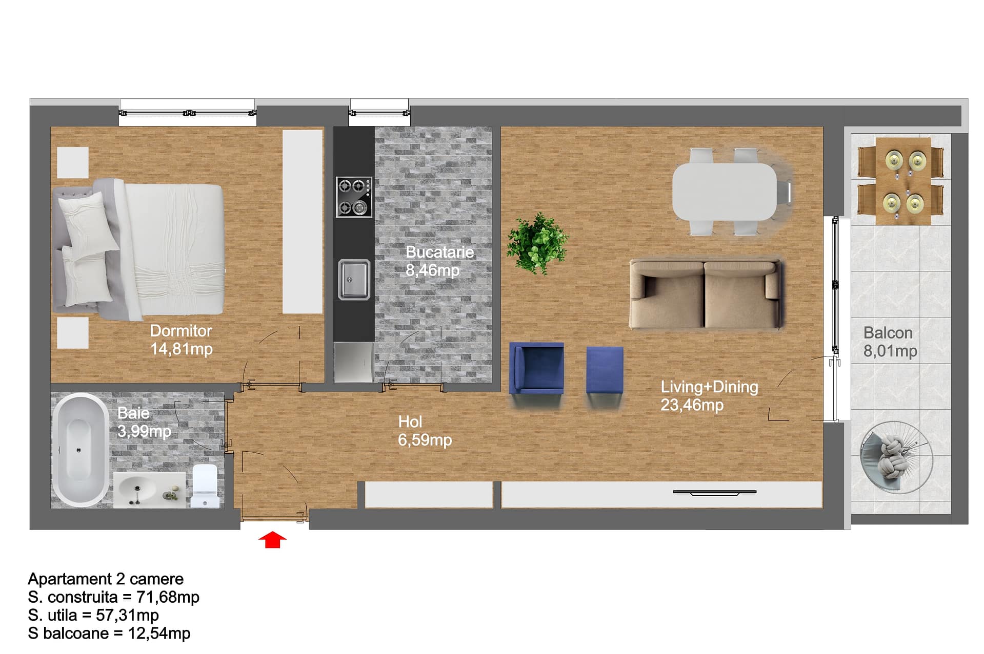 SUPRAFAȚĂ TOTALĂ UTILA 64 mp